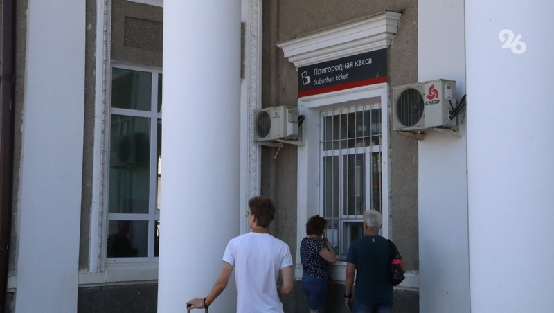 Участники выездного заседания побывали и на железнодорожном вокзале Минеральных Вод. Там действуют как кассы дальнего следования, так и пригородные. При этом пригородная касса есть и снаружи вокзала — это сделано для удобства пассажиров.