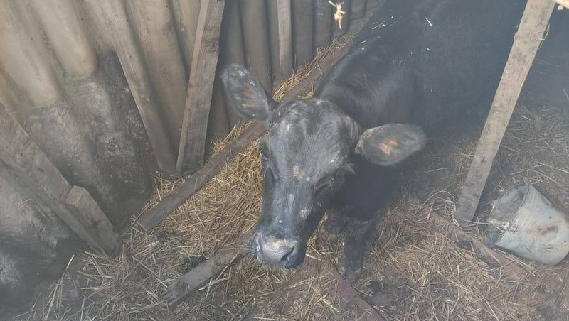 Корову, угодившую в ловушку заметила хозяйка, которая и вызвала спасателей на подмогу. Совместно с местными жителями при помощи манипулятора пассовцы помогли животному выбраться на свободу.
