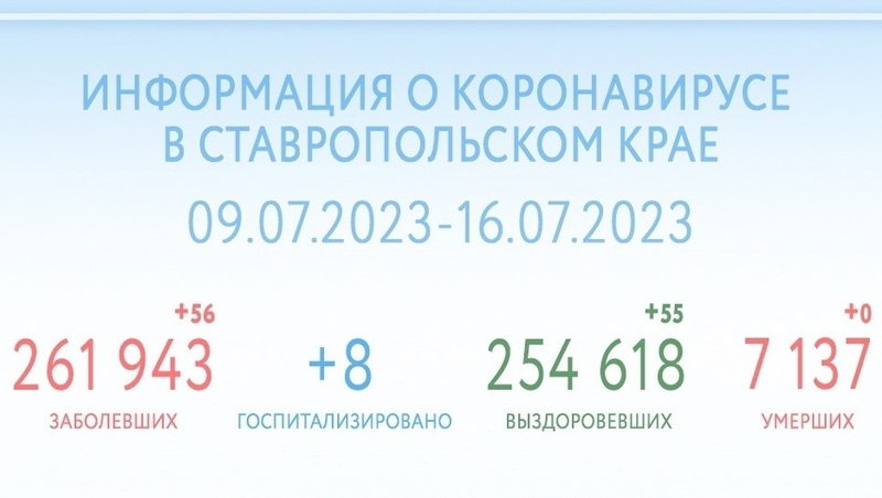 На прошлой неделе COVID-19 побороли ещё 55 ставропольцев. А общее число выздоровевших за всё время эпидемии превысило 254,6 тыс. человек.