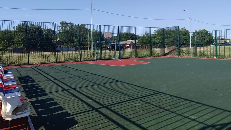 Спортивный объект расположен на улице Колхозной рядом с детской площадкой. Специалисты оборудовали места для зрителей, футбольные ворота, постелили безопасное прорезиненное покрытие и установили ограждение.