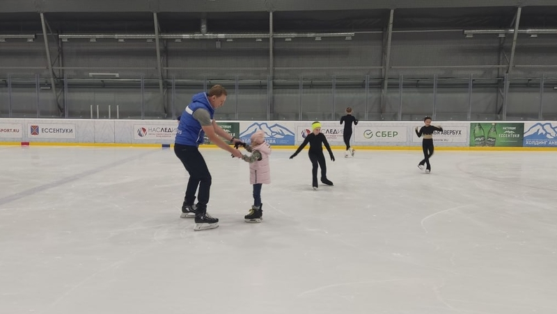 Новинкой в восстановительном комплексе стало катание на льду. Дети, которые занимаются фигурным катанием, обучали ребят из ЛНР. Покатался с детьми и глава города Александр Некристов.
