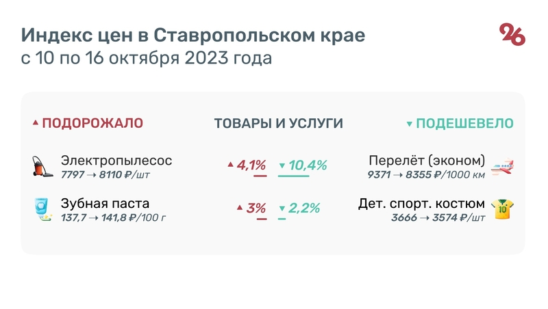 Индекс цен на товары и услуги в Ставропольском крае с 10 по 16 октября 2023 г.