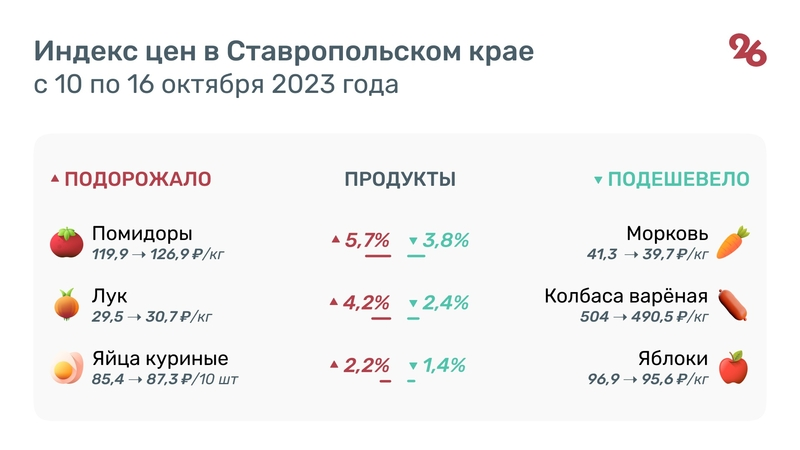 Индекс цен на продукты в Ставропольском крае с 10 по 16 октября 2023 г.