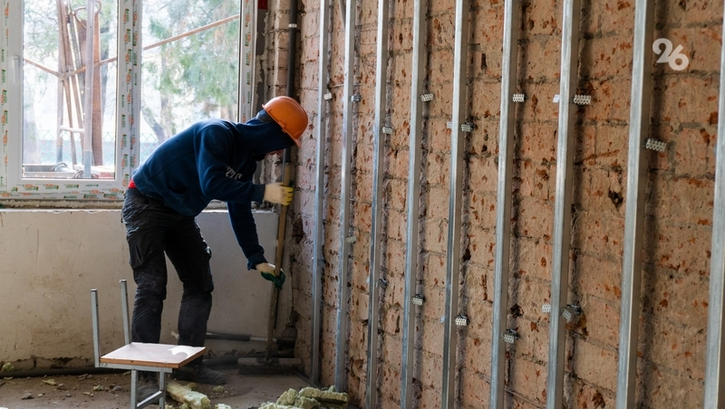 Готовность объекта достигает 55%. Ранее сообщалось, что к реконструкции ДК приступили и в селе Левокумка. Подобные работы проходят в учреждении впервые за полвека.