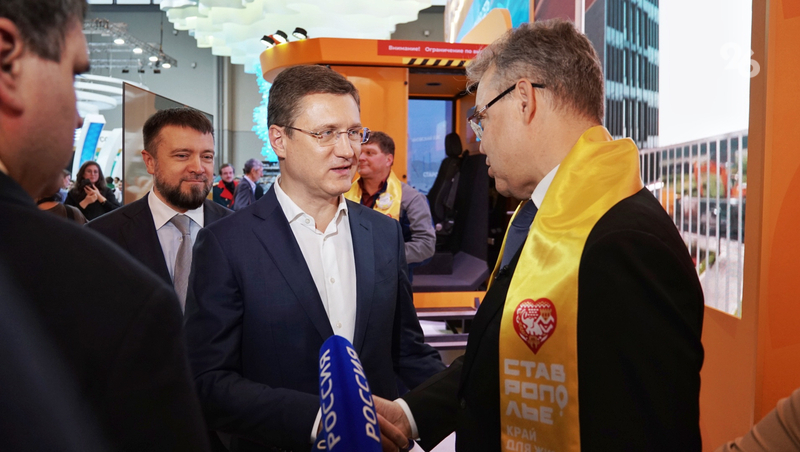 Губернатор Ставрополья Владимир Владимиров и зампред Правительства РФ, курирующий Северный Кавказ, Александр Новак встретились на международной выставке «Россия». Они осмотрели стенд, на котором представлены главные достижения края: курорты и санатории Кавказских Минеральных Вод, развитие сельскохозяйственной отрасли, ветряные электростанции, благоустройство территорий края, а также достижения в области здравоохранения, образования. В подготовке экспозиции принимали участие в том числе минэк, минпром и минсельхоз Ставрополья.