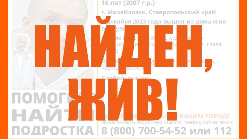 Об исчезновении 16-летнего парня стало известно 1 декабря. Спустя три дня подростка нашли. Его жизни и здоровью ничего не угрожает.
