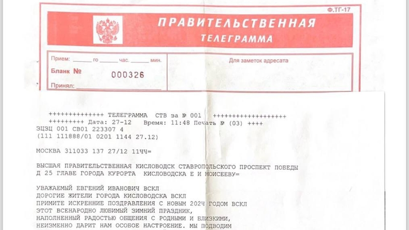 В поздравительной телеграмме Валентина Матвиенко пожелала кисловодчанам и муниципальным властям процветания и укрепления социально-экономического потенциала.