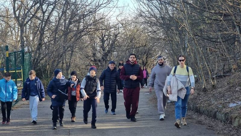 На вершину Машука поднялись жители городов Кавминвод. Маршрут стартовал с Поляны Песен: подняться можно было напрямую через лес или по асфальтированной дорожке.