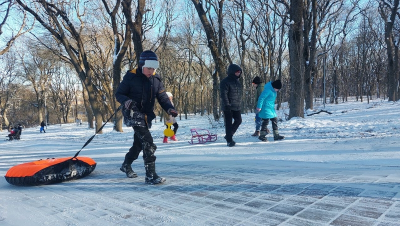 Ежегодно в Ессентуках, когда выпадает снег, аллеи парка Победы превращают в горки для катания на санках или тюбингах для горожан и гостей курорта.