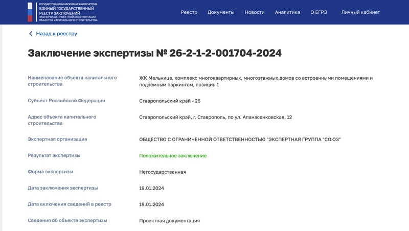 Застройщиком выступает Специализированный застройщик «М Груп». Адрес его офиса, по данным госреестра заключений, также числится на Апанасенковской, 12. Однако связаться с застройщиком и получить его комментарий не удалось.