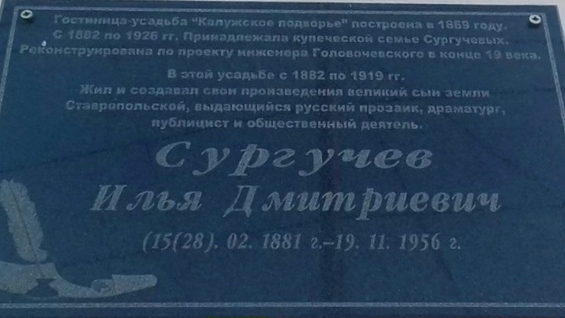 Табличку установили в 2007 году в соответствии с решением городской думы «Об установлении мемориальной доски ставропольскому писателю Сургучёву Илье Дмитриевичу». О том, что мемориальная табличка исчезла, стало известно 26 февраля.