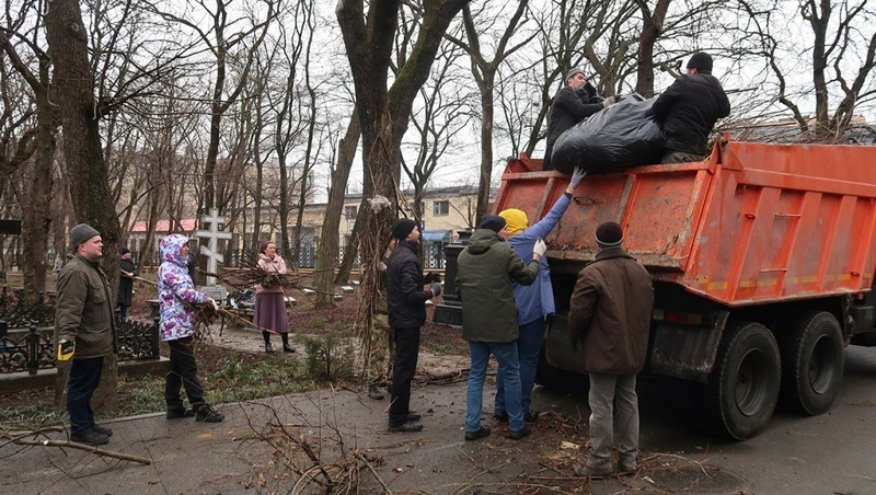 Музейные работники на один день сменили профессию и стали коммунальщиками. Работники культуры расчистили дорожки, привели в порядок надгробия и вывезли мусор на КамАЗе, предоставленном администрацией Октябрьского района.