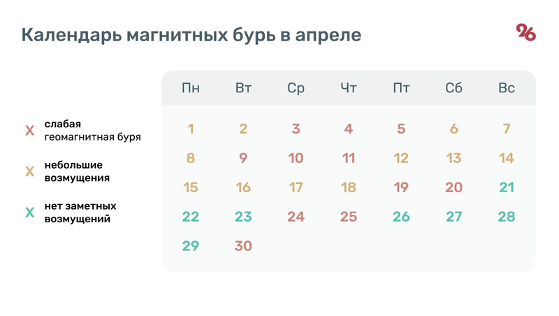 Предпоследняя неделя месяца будет самой спокойной в плане геомагнитных изменений — за исключением 24 и 25 чисел, когда в край снова придёт буря в три балла.
