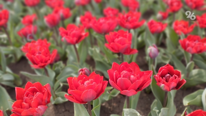 Отметим, что всего существует более 3 тыс. сортов тюльпанов. В Россию их в начале XVIII века привёз Петр I. С тех пор они стали популярными цветами для высадки в садах, парках и на приусадебных участках. В Пятигорске тюльпаны высаживают в монохромном порядке — на каждой клумбе представлены растения только одного цвета.
