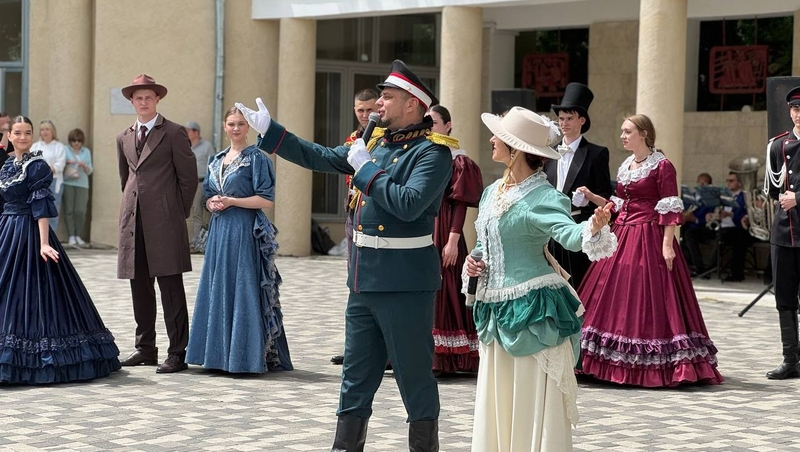 Открыл мероприятие оркестр. Затем актёры и актрисы в нарядах XIX века проследовали по Каскадной лестнице, изображая дворянское «водяное общество».