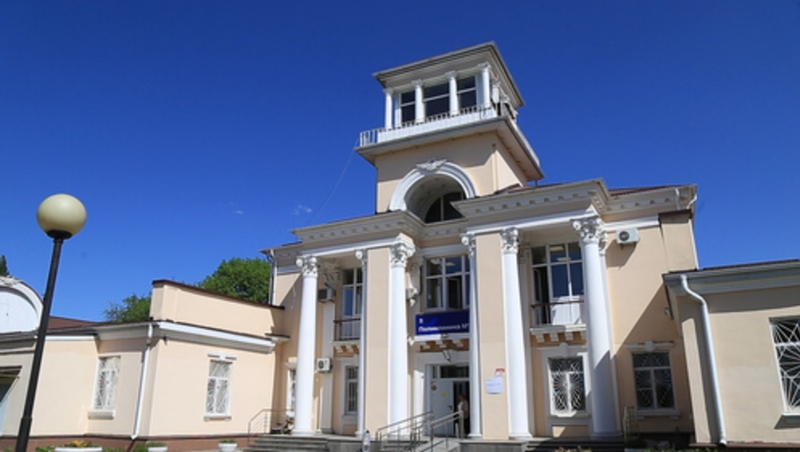 Здание медучреждения построили в стиле сталинский ампир в 1948 году. Рядом располагался аэровокзал и диспетчерский пункт. Поликлинику не только преобразили, но и оснастили новым оборудованием. Медучреждение получило новые рентгенологический и ультразвуковой аппараты. Оснастили также и клинико-диагностическую лабораторию, а в кабинете рентгенодиагностики установили современный цифровой комплекс.