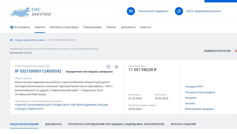 Заявку на аукцион подал один подрядчик, его признали победителем, при этом максимальная сумма контракта осталась без изменений — более 11,5 млн рублей. Согласно научно-проектной документации, реставрационные работы каскада фонтанов «Дельфины», который входит в список памятников архитектуры регионального значения, включают замену семи скульптур дельфинов. Также изготовят новые фигурные чаши в виде стилизованных раковин. Будет смонтирована новая система подачи воды.