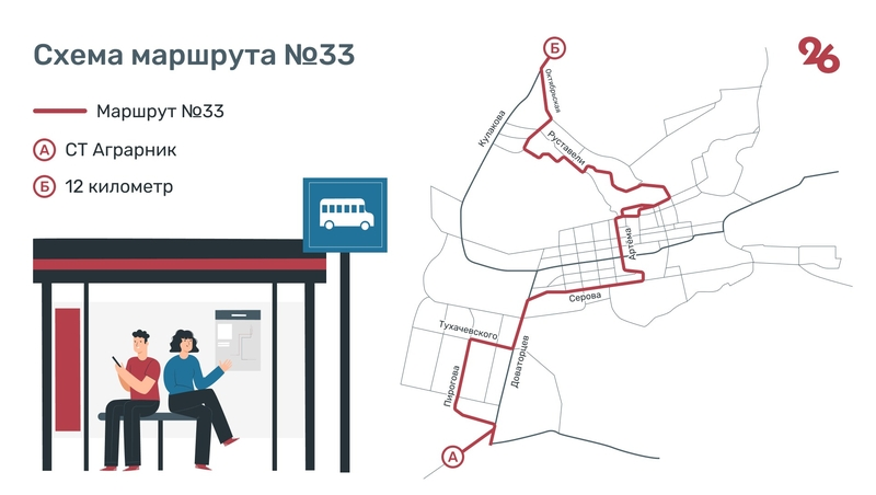 С субботы, 15 июня, на линию вышли автобусы, следующие по маршруту №33. Для перевозки пассажиров используют транспорт среднего класса вместимости. Маршрут №33 курсирует от СНТ «Аграрник» до 12 километра. Стоимость проезда составляет 20 рублей.