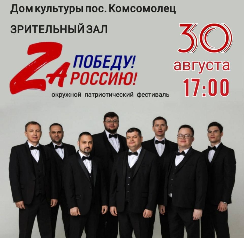Патриотический фестиваль «Zа Победу! Zа Россию!» пройдёт 30 августа в посёлке Комсомолец Кировского округа Ставрополья. Как уточнили в муниципалитете, в гости к кировчанам приедет вокальный ансамбль «45 параллель» из краевого центра.