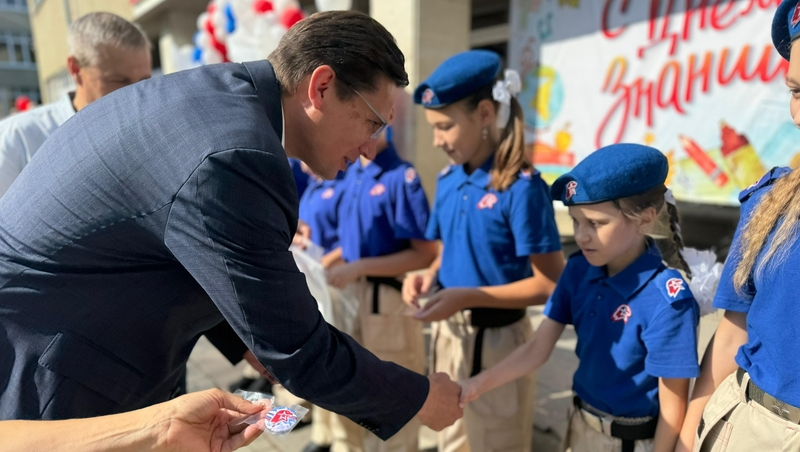 На торжественном открытии класса мэр города Евгений Моисеев вручил ученикам нагрудные значки.
