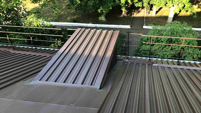 Строители заменили скатную крышу, которая долгое время нуждалась в обновлении. Подрядчик демонтировал старое покрытие, восстановил стропильную систему, а затем уложил водонепроницаемую кровлю. Специалисты повысили огнестойкость всех деревянных конструкций, а также заменили водостоки.