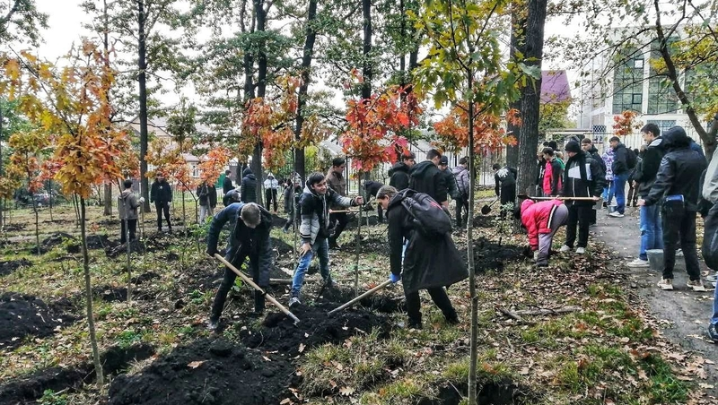 В высадке деревьев участвовали представители администрации города, жильцы близлежащего ЖК, студенты колледжей, школьники из гимназии №30 и волонтёры экопроекта «Субботник».