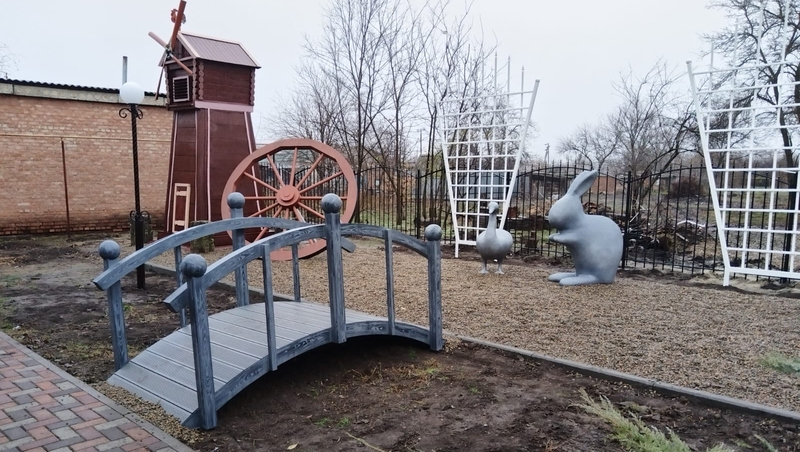 По просьбе жителей в селе Красная Поляна благоустроили сквер. Специалисты обустроили тротуары, установили скамейки и урны. Среди арт-объектов — декоративный мост и альпийская горка из камней и цветов.