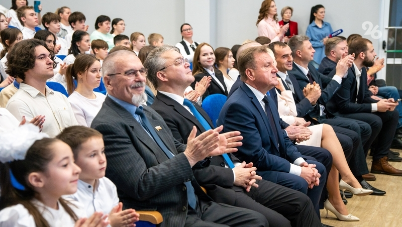 После осмотра учебных помещений гостей пригласили в актовый зал, где ученики представили творческую программу. В ответном слове губернатор заявил, что на Ставрополье до конца года откроют ещё пять школ.