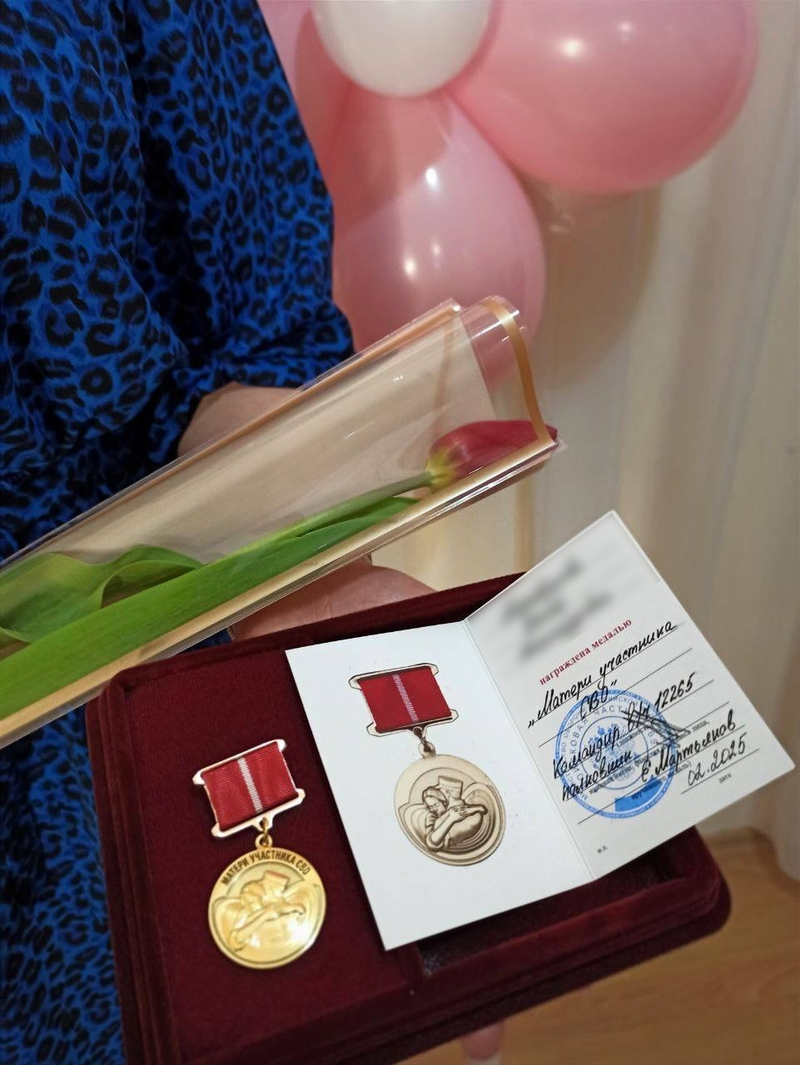 Её сын сейчас находится на СВО. А таким знаком отличия награждаются матери, чьи дети проявили мужество и отвагу на поле боя.