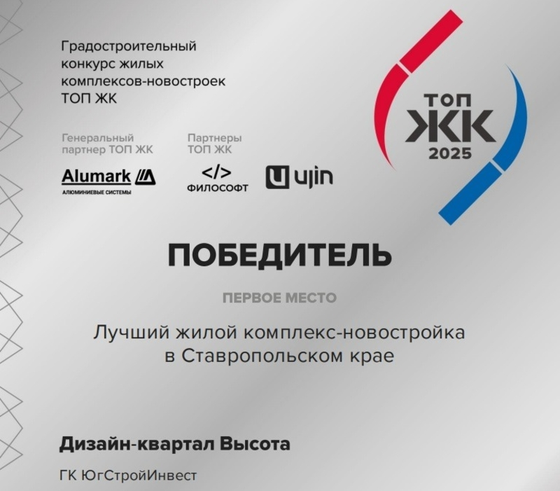 Стали известны итоги самого масштабного российского конкурса жилья «ТОП ЖК–2025». Лучшими жилыми комплексами-новостройками на Ставрополье жюри признало дизайн-квартал «Высота» и концептуальный район «Кварталы 17/77» от группы компаний «ЮгСтройИнвест».