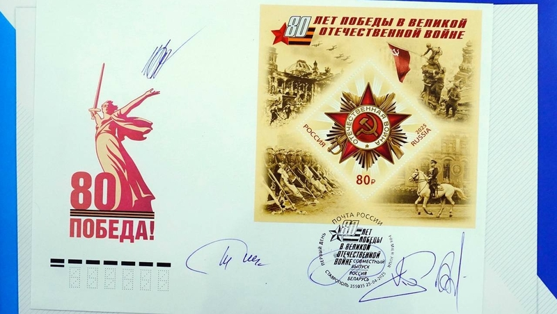 Ставропольский край стал одним из 34 субъектов Российской Федерации, которым выпала честь провести у себя церемонию специального гашения новых марок. В центре блока изображён орден Отечественной войны I степени, а на полях — фотоработы легендарных военкоров Евгения Халдея и Владимира Гребнева.