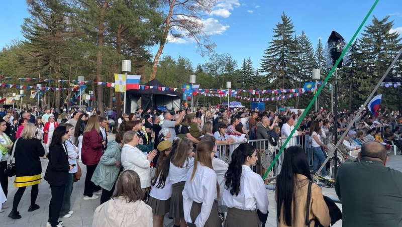 Праздничная программа прошла в обновлённом Комсомольском парке. На его территории организовали тематические площадки, мастер-классы, плетение маскировочных сетей, интерактивные зоны, викторины и спортивные состязания.