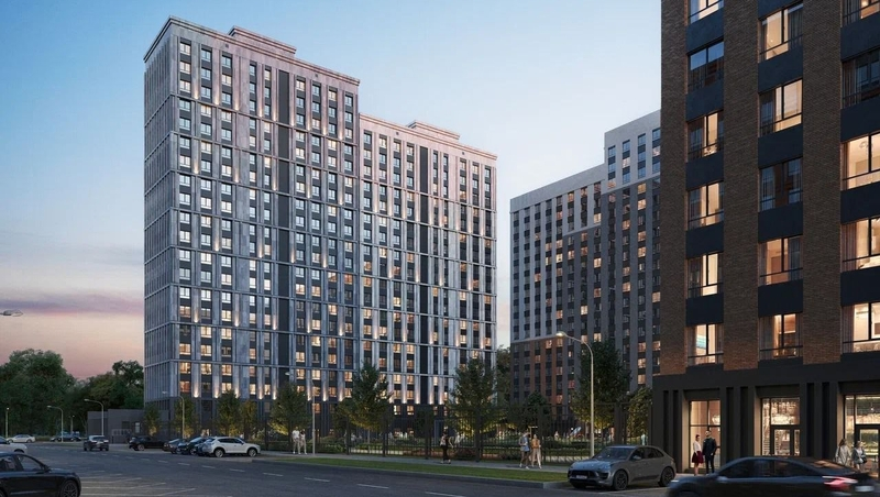Литер 6.2 (17–19 этажей) реализован в более классической архитектурной концепции. Фасад облицован керамическим кирпичом, уложенным в трёх гармоничных оттенках.