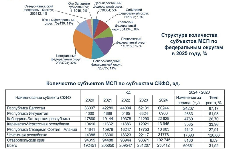При этом в каждом регионе округа есть свои успехи. В КЧР динамика развития МСП оказалась интенсивнее, чем у соседей, а число самозанятых превысило плановые показатели в 8 раз. Лидером по приросту субъектов МСП стала Чечня, где успешно работают 11 бизнес-инкубаторов и 4 технопарка. В Дагестане системно борются с теневой занятостью через зональные рабочие группы.
