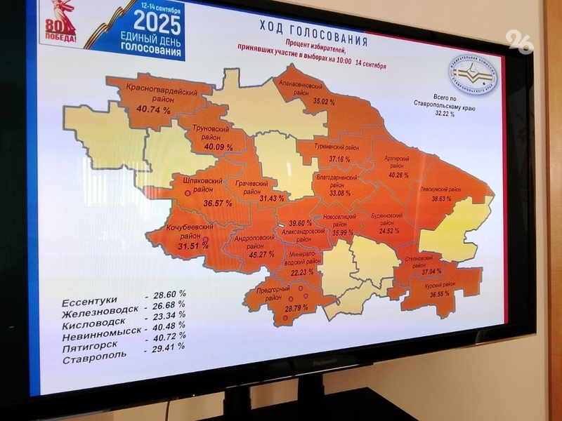 Среди городов наибольшую активность зафиксировали в Пятигорске — 40,7%, а также в Невинномысске — 40,4%. В Ставрополе явка — 29,4%.