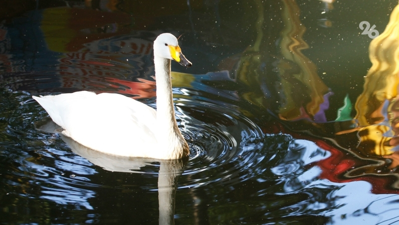 По информации администрации, лебедь спокойно сидел на земле, не опасаясь людей.