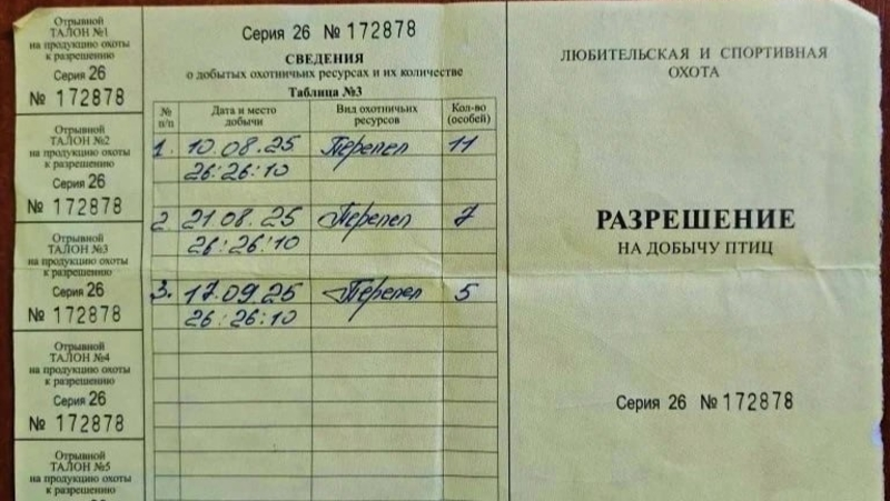 Охотники обязаны в течение 20 дней после завершения сезона подать сведения о добытых ресурсах по месту получения разрешения. К добытым видам относятся перепел обыкновенный, вяхирь, сизый голубь и кольчатая горлица. Нарушение этого требования влечёт административную ответственность и может стать основанием для отказа в выдаче новых разрешений на охоту сроком на один год.