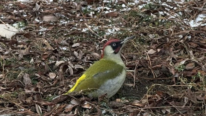 Также среди зимующих птиц заметили зелёного дятла, который хоть и не является редким, но всё же интересен для наблюдателей.