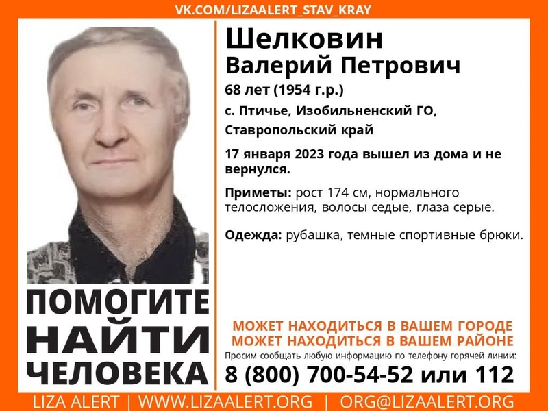 Всех, кому что-либо известно о ставропольце, просят позвонить по единому телефону поискового отряда: 8 (800) 700-54-52 или по номеру 112.