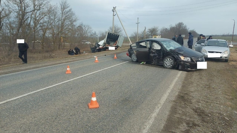 ДТП произошло 31 января на трассе Новопавловск — Курская — Моздок. По предварительным данным, водитель «Газели» не пропустил ехавший по главной дороге Chevrolet Cruze и врезался в легковушку.