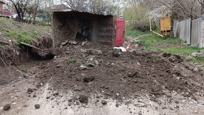 Улица, на которой произошло ДТП, оказалась засыпана грунтом, который перевозил попавший в аварию автомобиль. Сам водитель с травмой головы и рваной раной грудной клетки был доставлен в больницу.