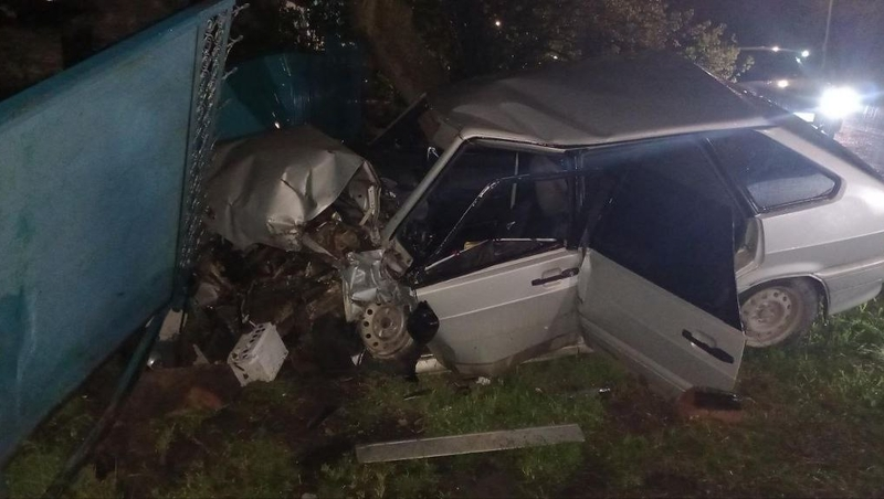 По предварительным данным, водитель ВАЗ-21140 превысила скорость на мокрой трассе, не справилась с управлением и съехала с трассы. Автомобиль влетел в дерево и забор частного домовладения.