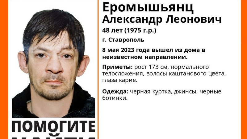 Правоохранители и поисковики обращаются ко всем, кто располагает информацией о местонахождении Александра Еромышьянца, с просьбой сообщить об этом по одному из номеров: 8(800)700-54-52, 8(8652) 30-50-70, 560217, 02, 102 или 112.