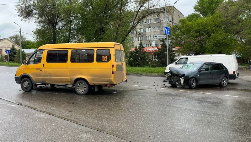 Пассажирский транспорт столкнулся с легковым на улице Железноводской. Отмечается, что в момент автоаварии внутри «Газели» был только водитель.