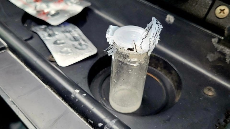 У водителя «девятки» изъяли несколько смартфонов, зарядные устройства для них, а также флакон, в котором содержалась прозрачная жидкость с порошкообразным веществом. Что именно находилось в склянке — предстоит выяснить экспертам.