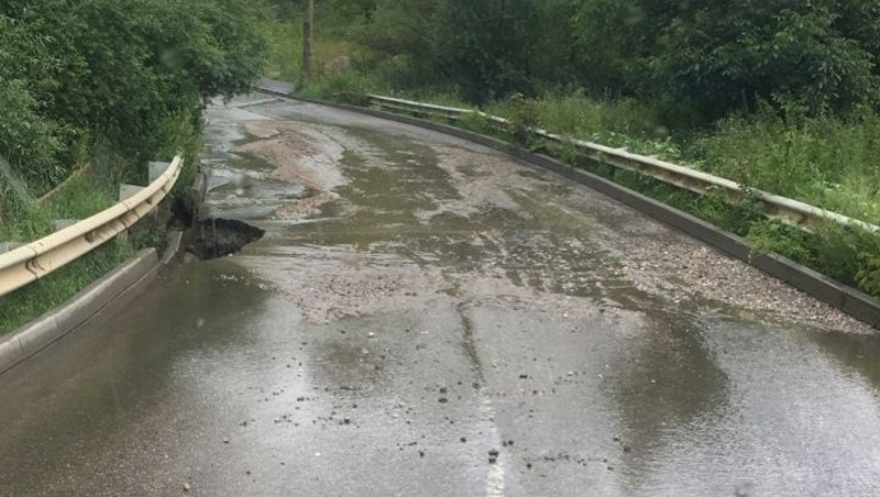 Мост по единственной асфальтированной дороге, ведущей от Кисловодска в посёлок Зеленогорский, частично обрушился из-за сильных ливней. Это случилось в воскресенье, 23 июля.