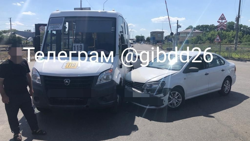 Днём в понедельник, 31 июля, в Михайловске произошло столкновение маршрутной «Газели» и легкового автомобиля вблизи железнодорожного переезда. В результате происшествия никто не пострадал.