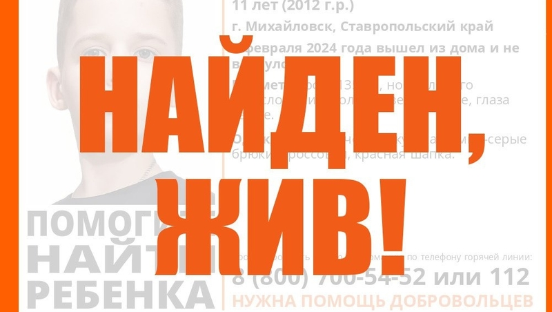 В день исчезновения школьник был одет в красно-чёрную куртку, тёмно-серые брюки, кроссовки и красную шапку. Информацию о его местонахождении просят сообщать по номеру: 8 800 700 5452.