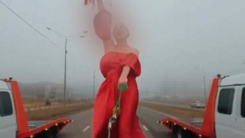 Водители рассказали, что заказчицей была сама пассажирка. Она наняла эвакуаторы с красными бортами, чтобы они соответствовали цвету её платья.