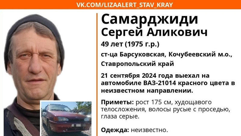 Пропал 49-летний житель станицы Барсуковской. Во что он был одет в момент исчезновения — неизвестно.